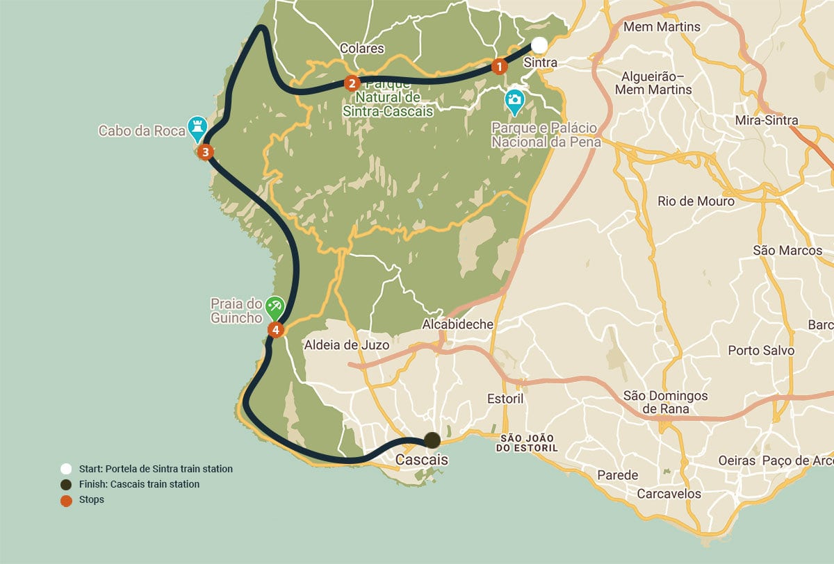 Soak in the stunning coastline as we take the scenic route past famous Guincho Beach towards the beautiful fishing village of Cascais. Before we say farewell we’ll taste Sintra’s century-old local sweet pastry, the “travesseiro”, with homemade “ginja” liqueur. From here you can take the train back to Lisbon or ride with us back to Sintra station.